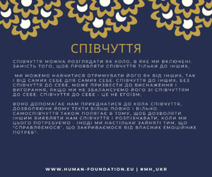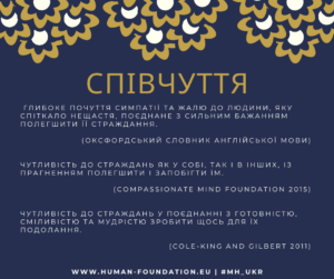 Співчуття можна розглядати як коло, в яке ми включені. Замість того, щоб проявляти співчуття тільки до інших, ми можемо навчитися отримувати його як від інших, так і від самих себе для самих себе.