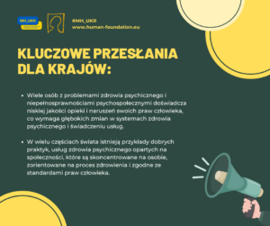 Zdrowie psychiczne zyskało większą uwagę w ciągu ostatniej dekady ze strony rządów, organizacji pozarządowych (NGO) oraz organizacji międzynarodowych, w tym Organizacji Narodów Zjednoczonych (ONZ) i Banku Światowego. Zapraszamy do zapoznania się z kluczowym przesłaniem dla wszystkich krajów!