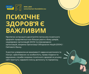 Протягом останнього десятиліття питанням психічного здоров’я приділяється все більше уваги з боку урядів, неурядових організацій (НУО) та міжнародних організацій, зокрема Організації Об’єднаних Націй (ООН) і Світового банку.